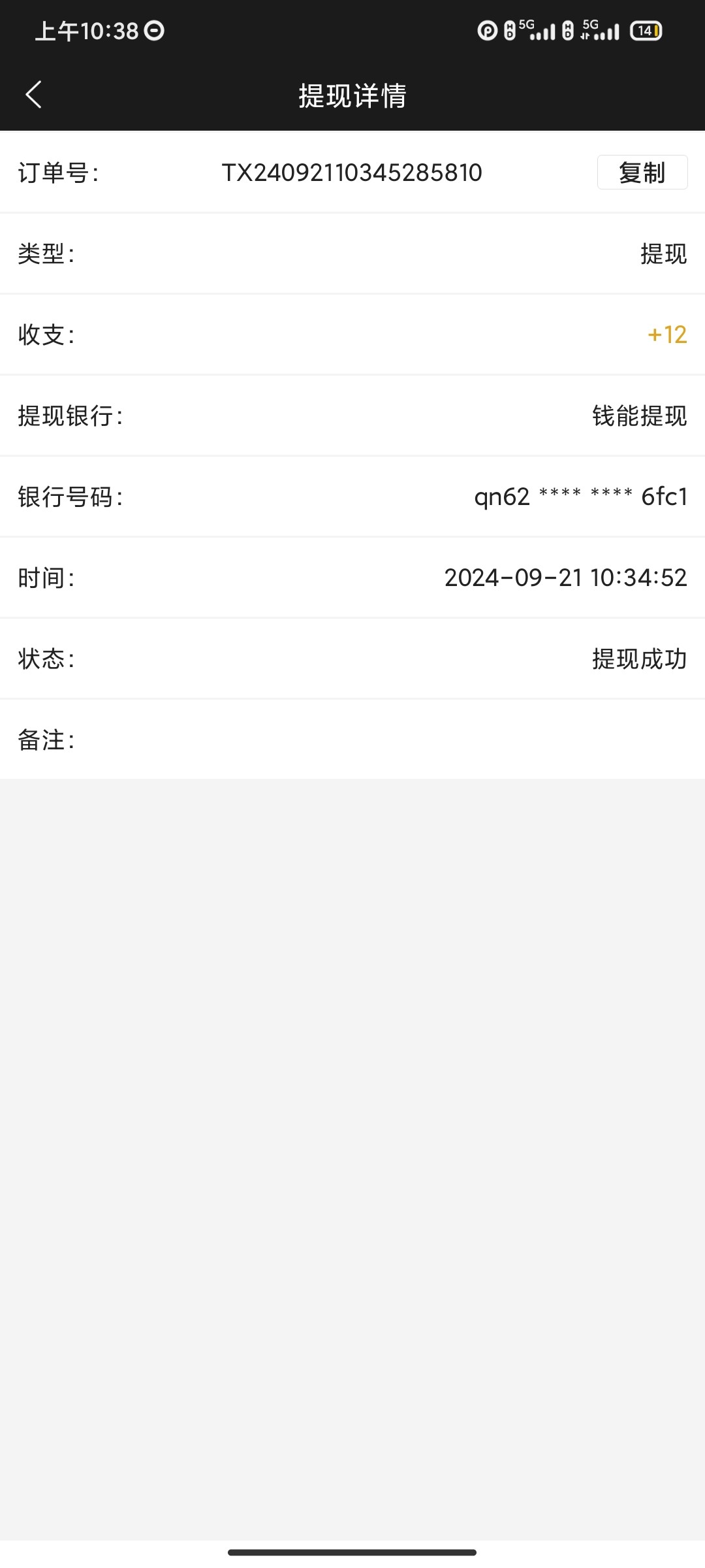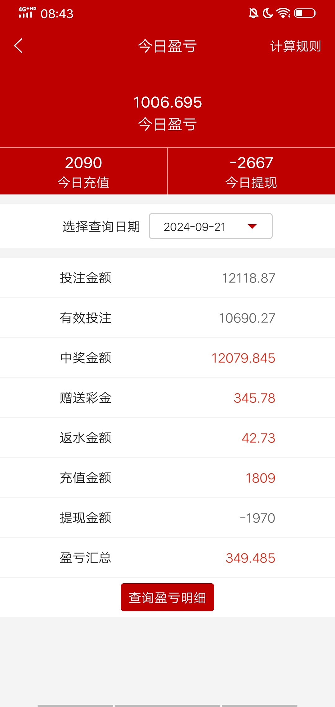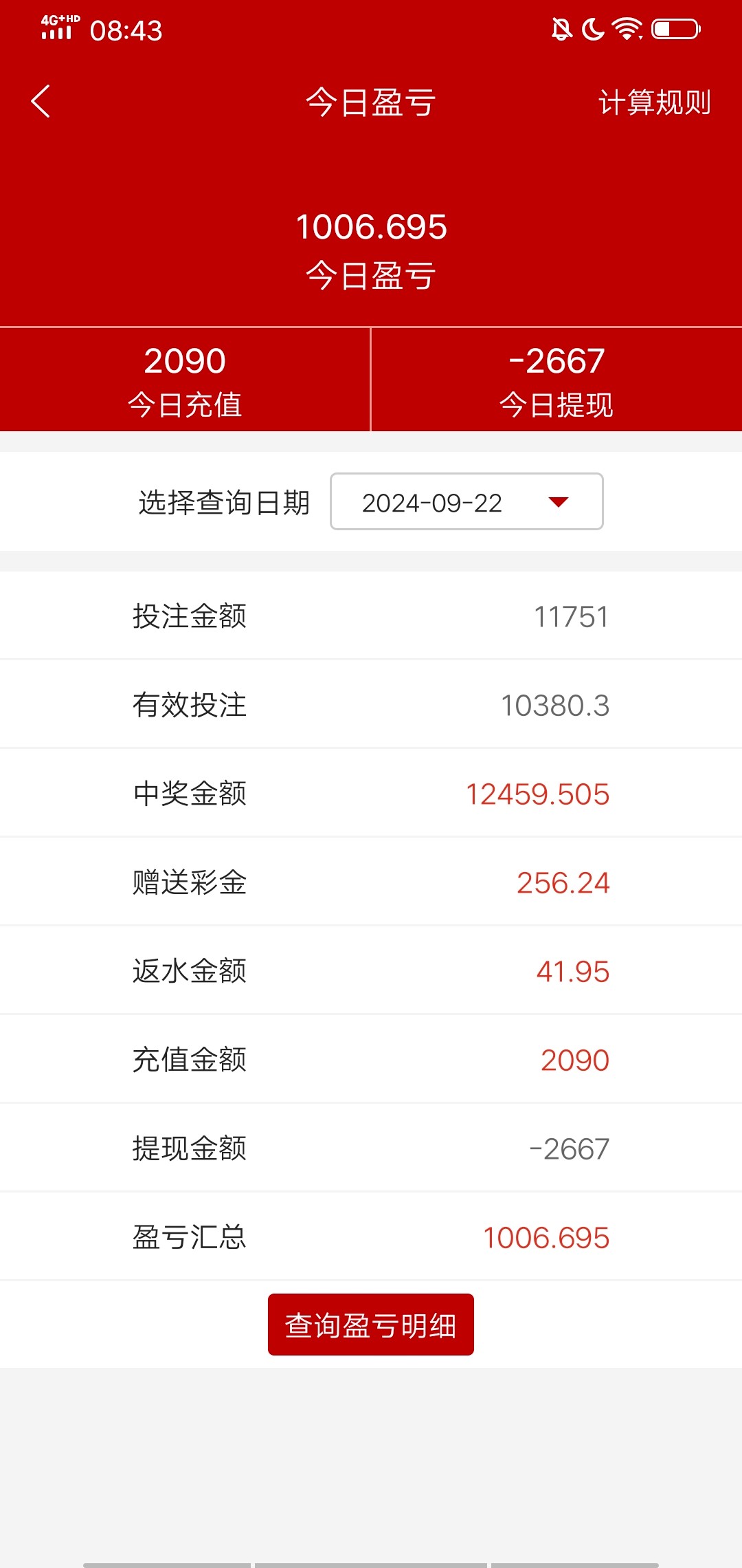 今天赢了12块钱