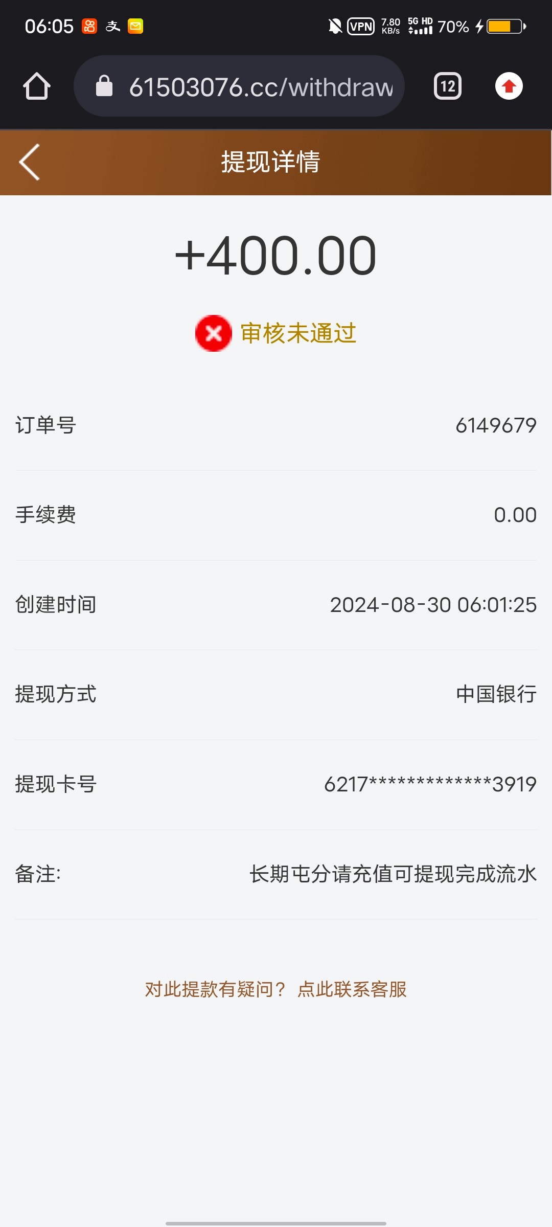 充值的时候一直不回消息等支付完成过后不回消息,等订单结束过后就回我了,蛋蛋这个能帮忙处理一下吗?过的以前那个老哥白菜网链接