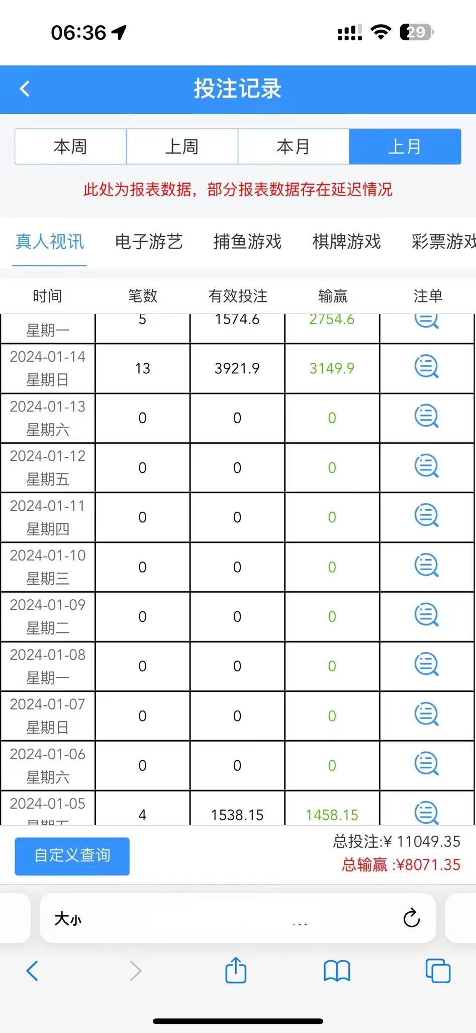 6天赢了1w 一晚上送过去...
