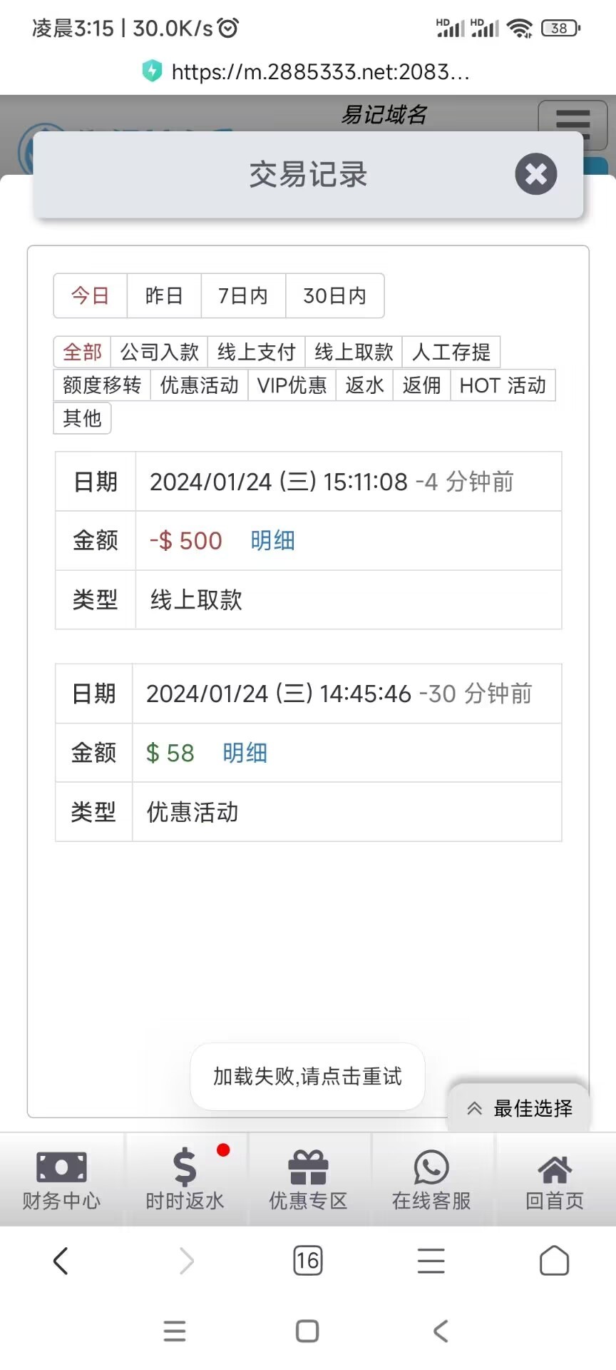 野鸡台她妈的都能提三两百,你妈逼推的新亚充了2000一个逼都没提款过,唯一一次还被黑