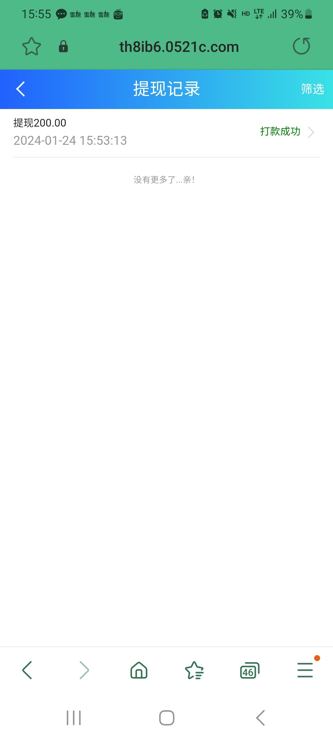 回馈了38,提了一百不知道黑不黑