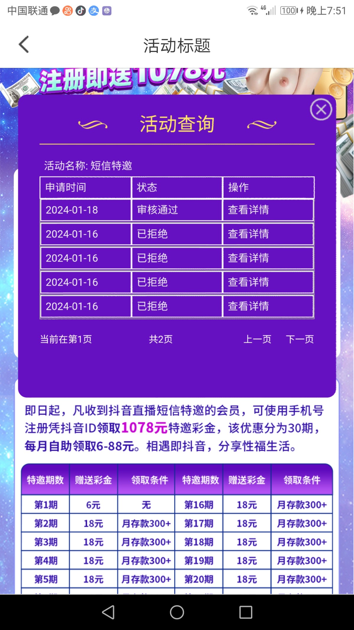 不知名的小鱼: 来短信了上去秒通过  可惜我不是赌神