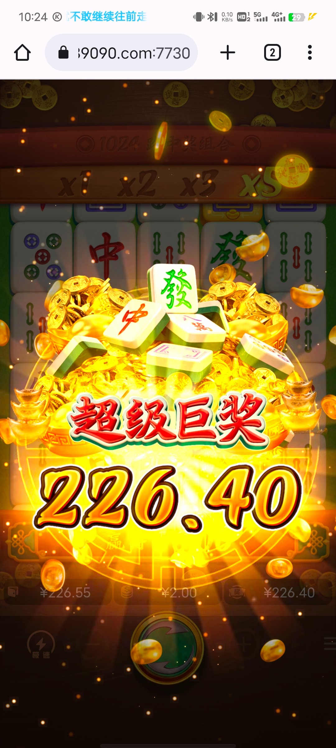 这两天不知道怎么了,玩电子就爆,下午2块一拉麻将爆400多倍。昨天前天也是爆。就去那个狗杂种的jnd去一次输一次