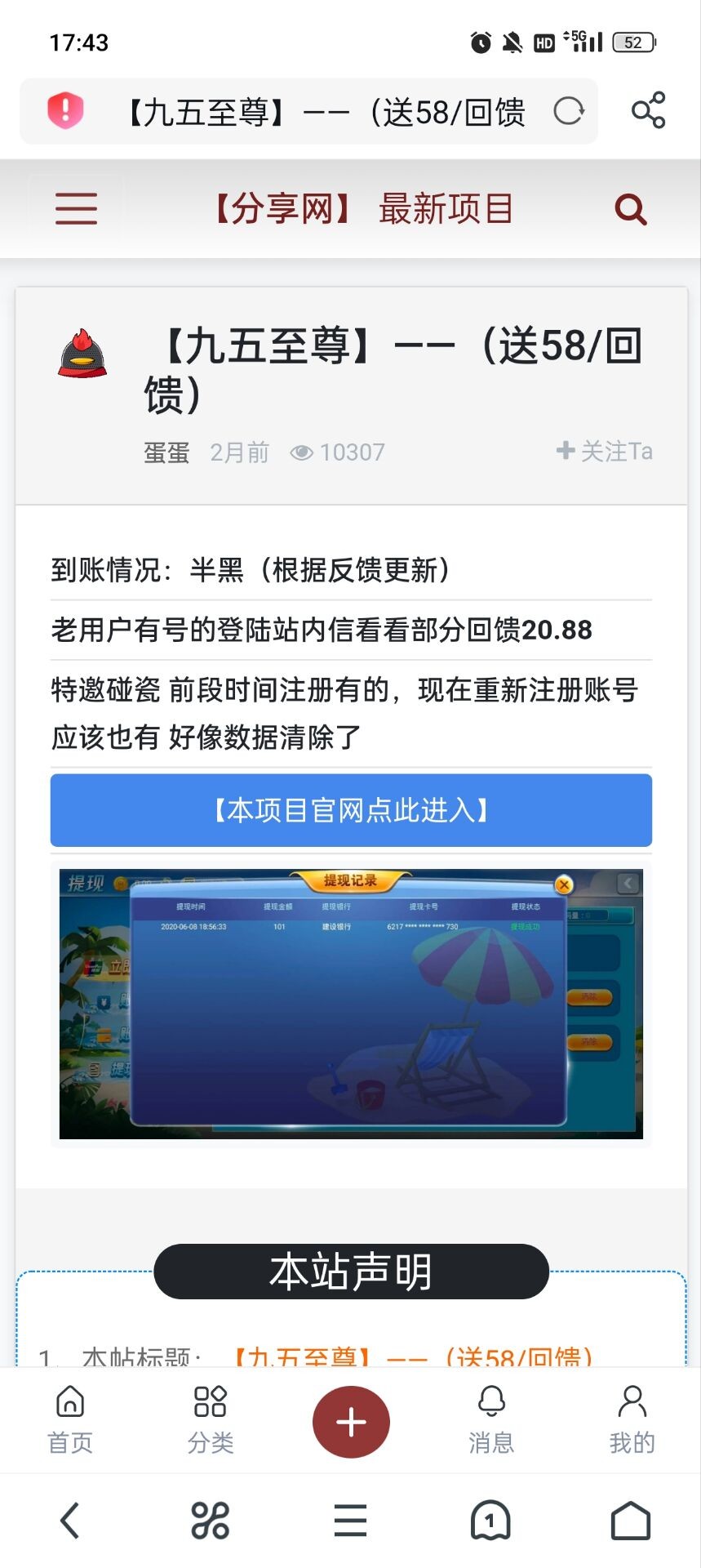 分享网致力打造全网最大的白嫖论坛,与狗庄斗智斗勇,让海外各大平台公司头痛畏惧,我们打击了狗庄嚣张气焰破坏,狗庄国内生存环境做出一份力量,如他人需要请把我们的“家”分享给更多需要的老哥。