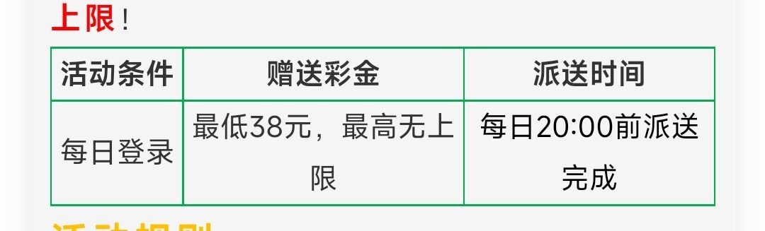 注册绑卡活动申请18,每天登入有机会抽取38彩金。