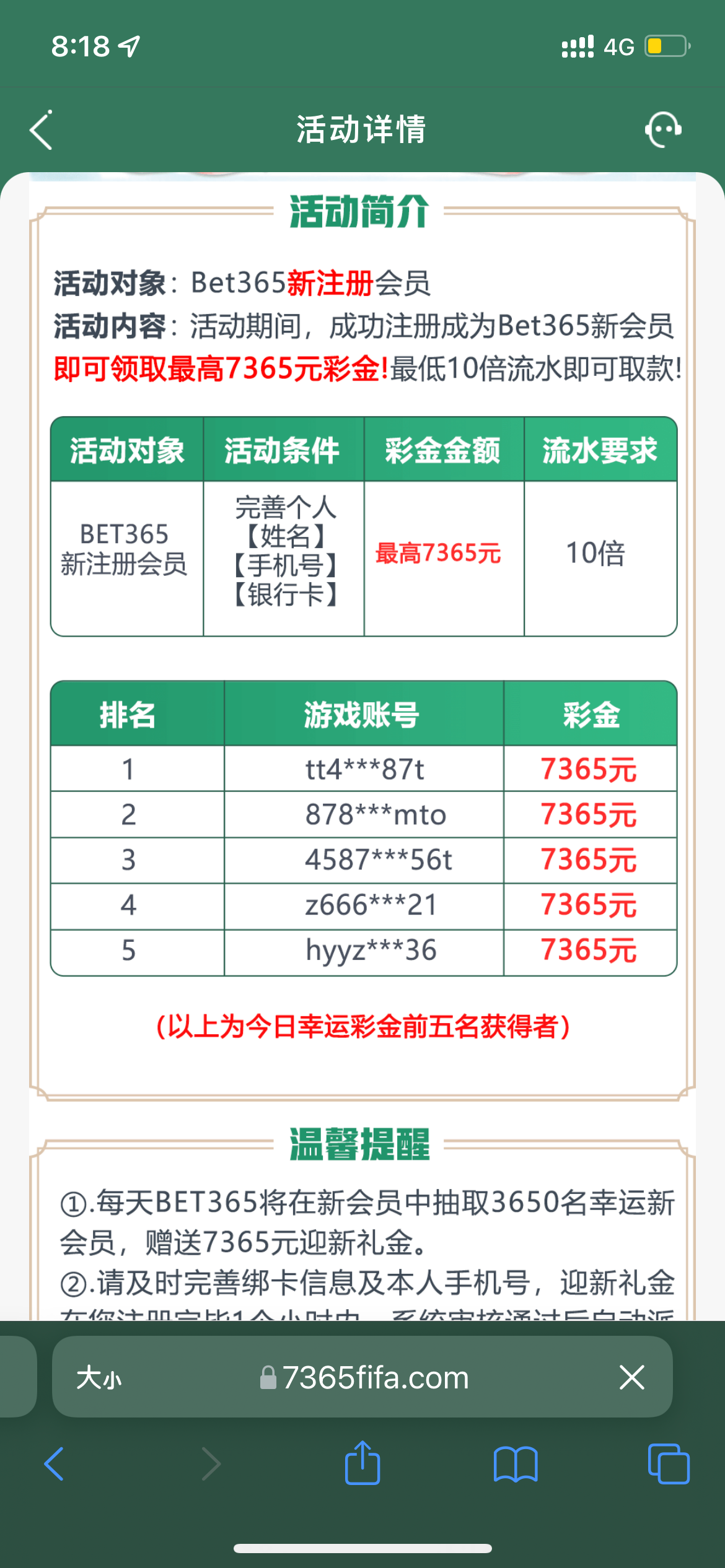 06:36注册绑卡,坐等7:36派发7365元彩金。