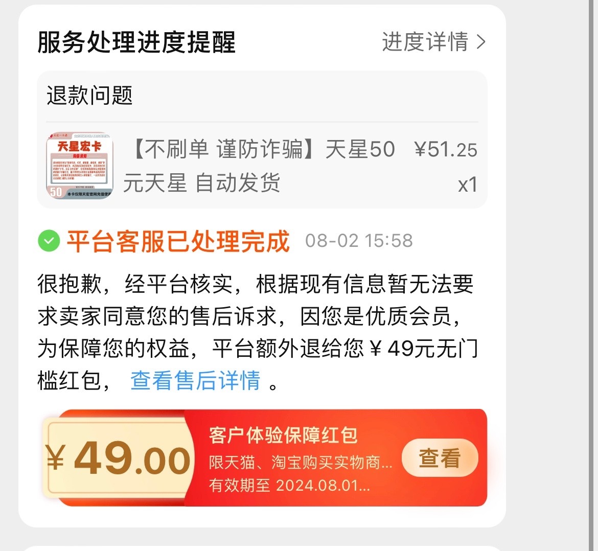 在淘宝买过各种卡的申请退款,拒绝了不要慌,直接退款就更好,如果拒绝了就联系淘宝客服小二说充值没到帐..然后投诉等电话,等打电话过来一般很快,你就说充值游戏,然后又叫游戏方那边查询了早就用过了这张卡(会p图就更好),然后你就一直不耐烦的语气说淘宝每次买东西都这样,还不如在京东买。然后100%他会说送你订单金额的百分之百无门槛红包,50就送你50的红包100就送你100的红包。
