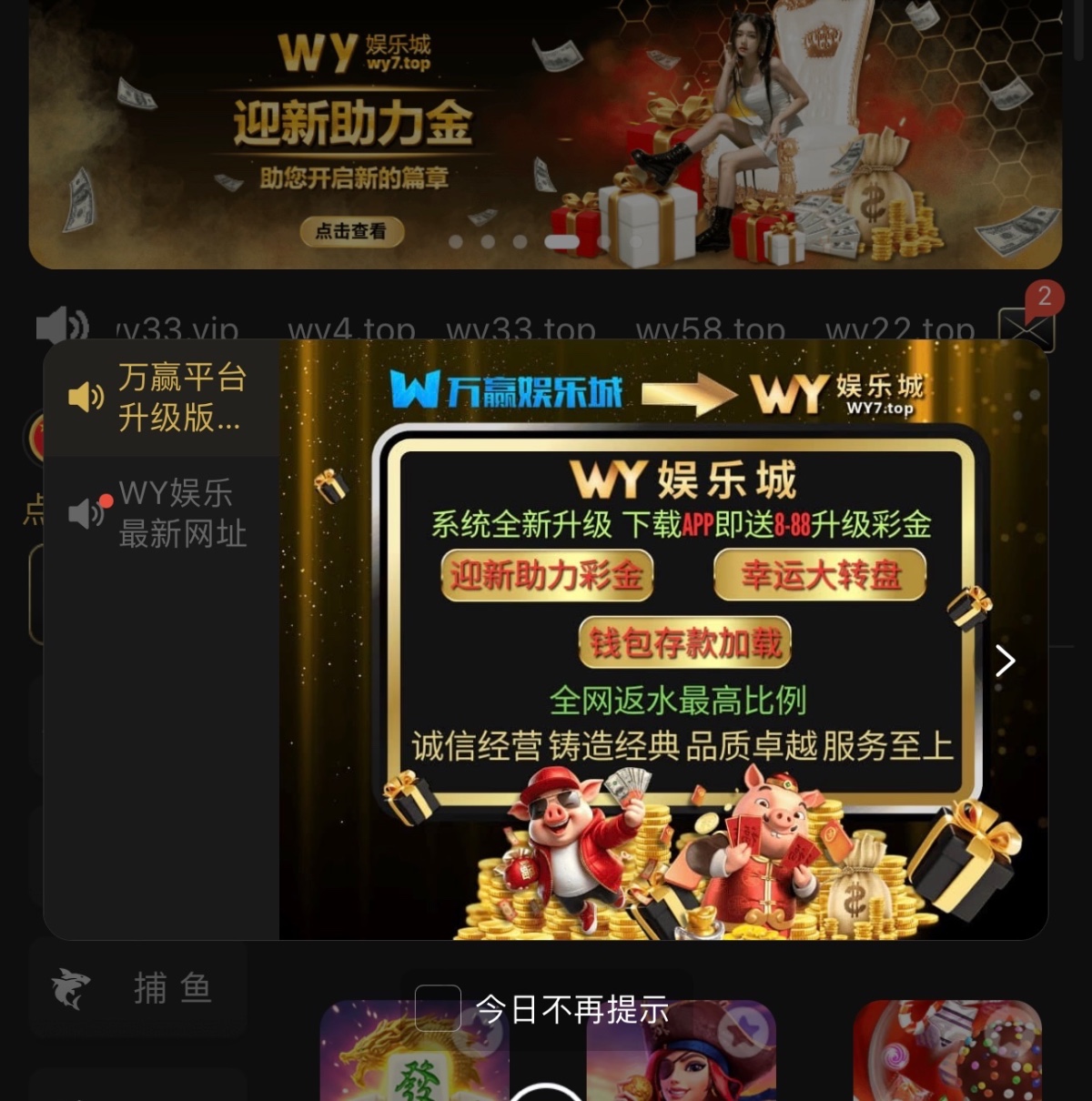 万赢娱乐改版送彩金老用户登录看有没有彩金 没有的话问一下客服 具体看下图