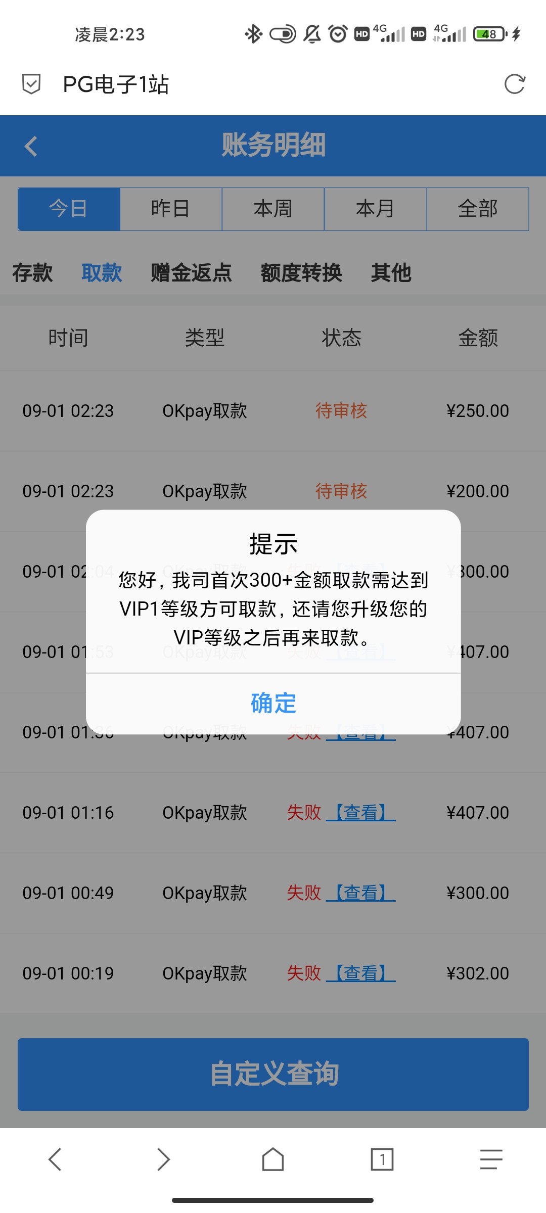 打一倍流水提现,充值了50打完流水,后面提了七八次都是失败问客服,客服还让我充值