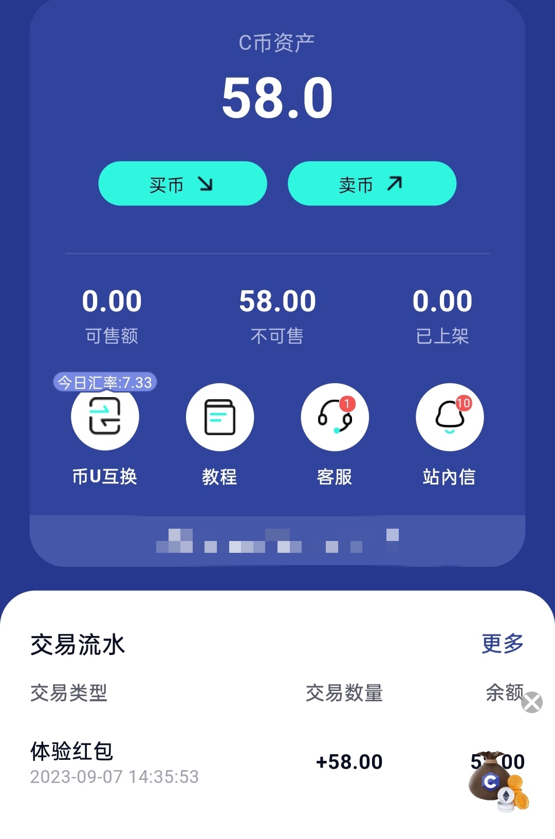 提到c币100,58还是不能用啊