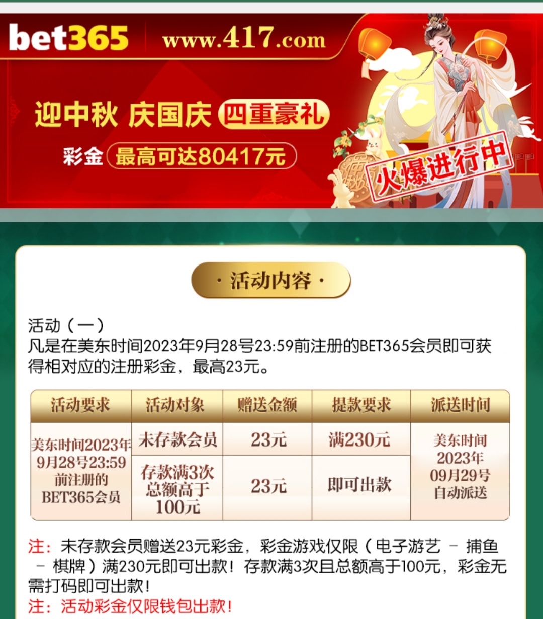 老用户中秋节期间回馈23,详细介绍看活动。