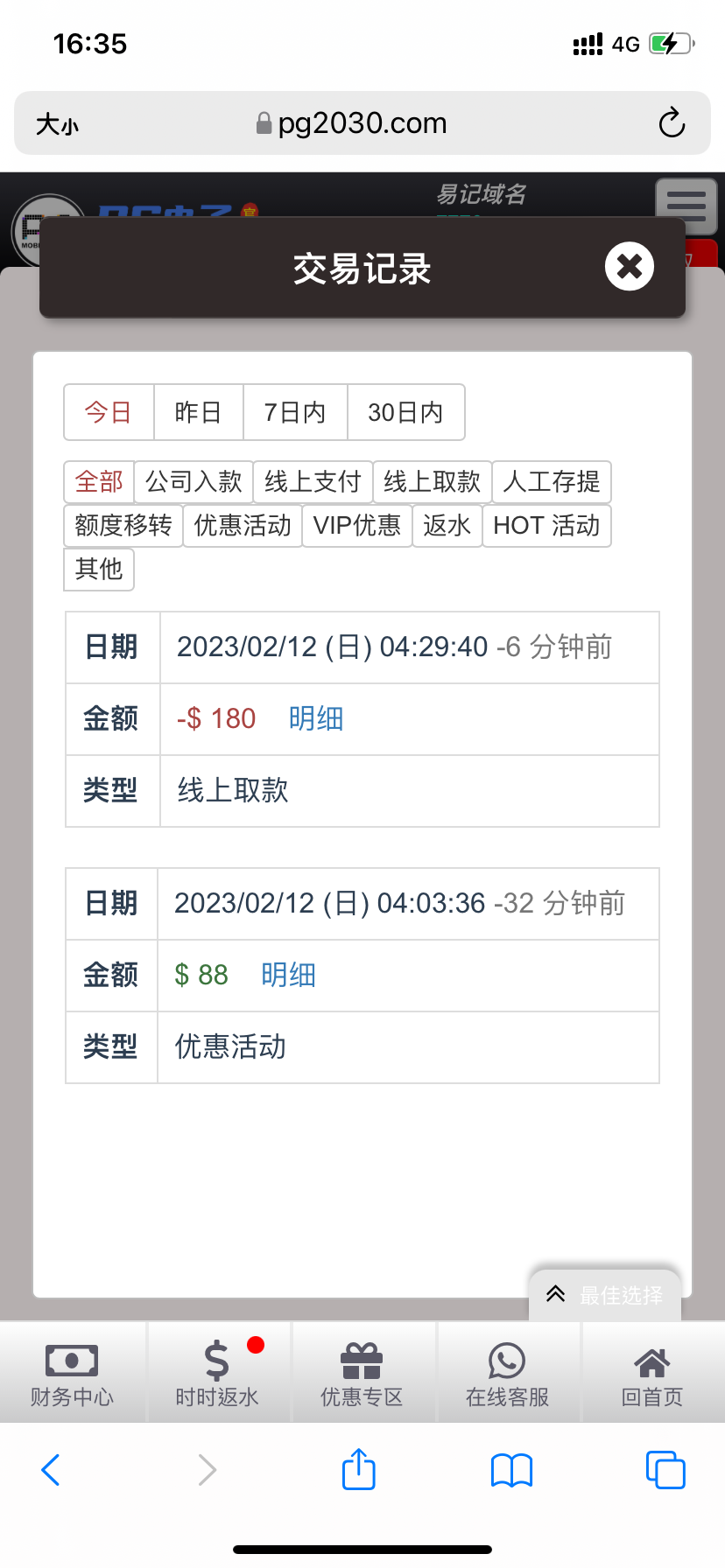送的88 提款180 到账