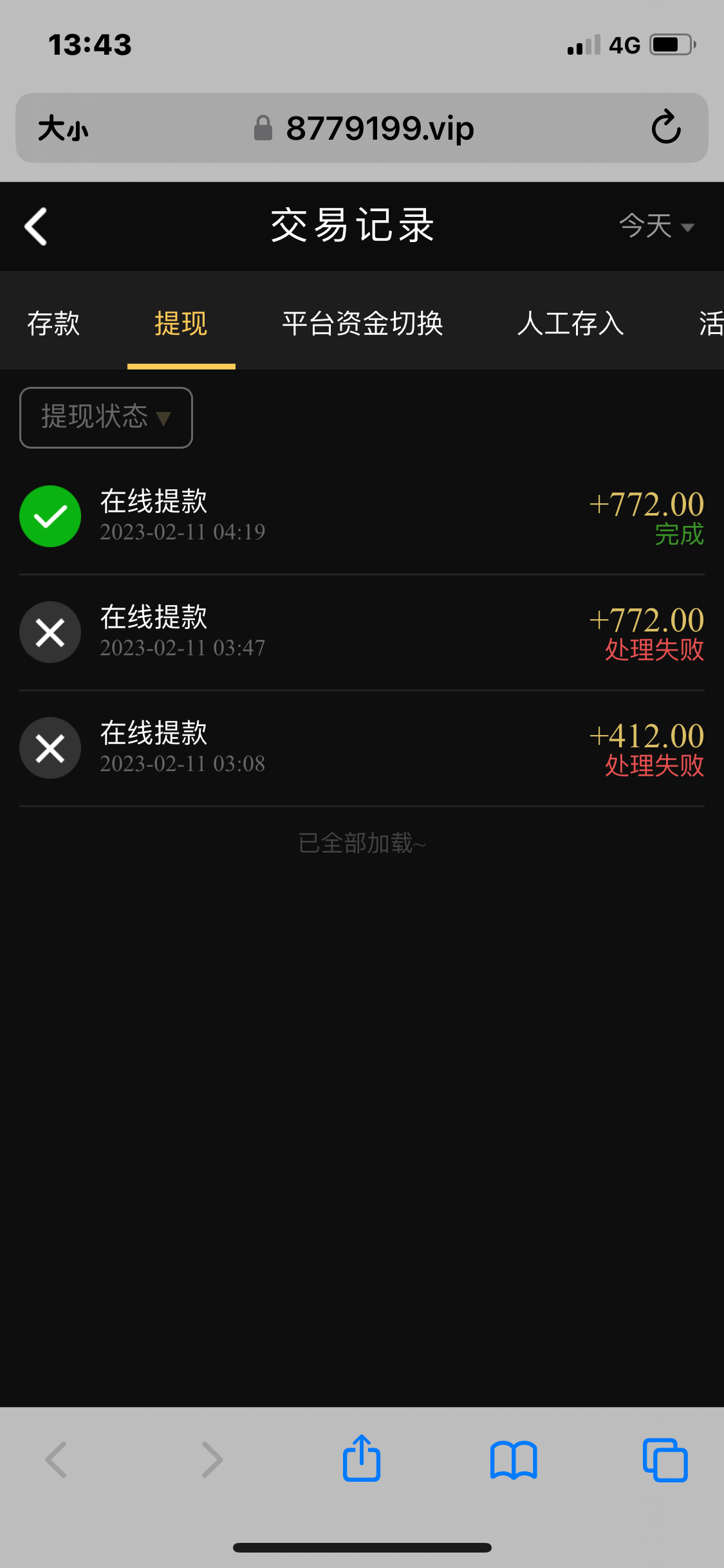 58彩金打到514  要充值100  然后充值100  打到772  提现成功还没有到账