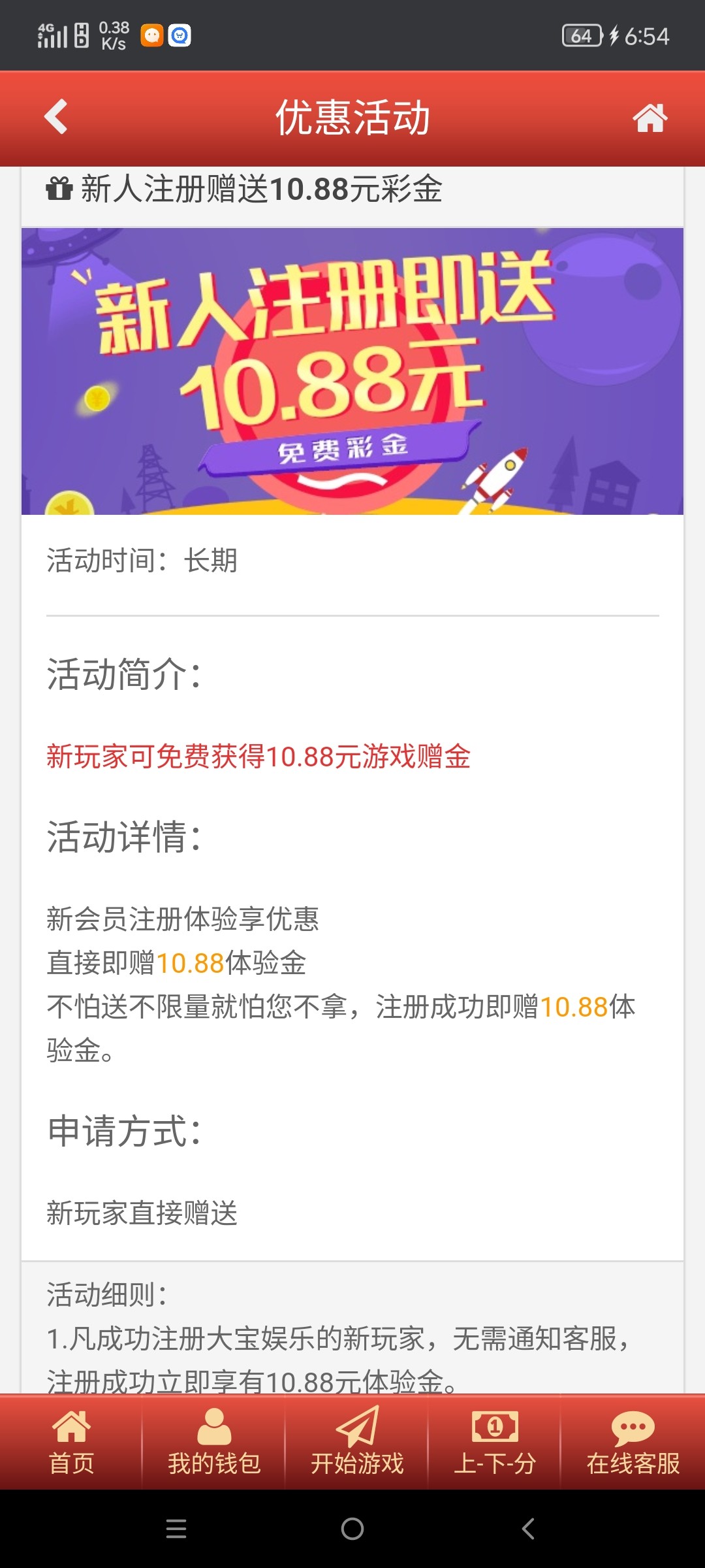 注册绑卡,自动赠送10.88,游戏额度手动划转,选择LG网页版,活动介绍打满500提现。