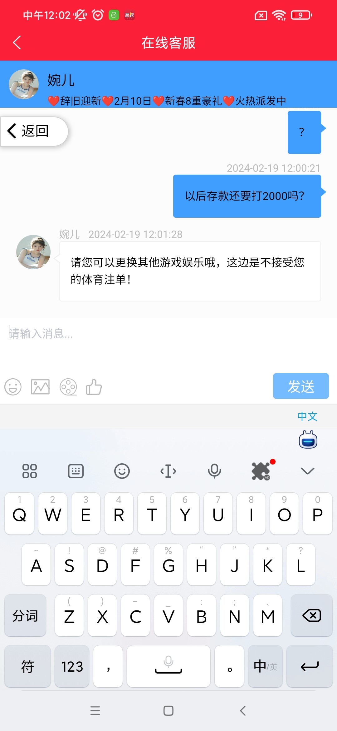 跟330一个德行,过年红包抢的下IM体育赢了点直接跟我说不能玩,不然清空盈利,真逗