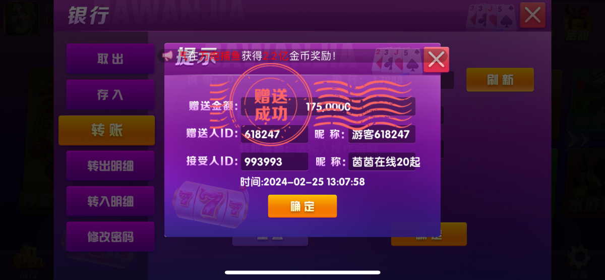 注册大玩家以后给大号拉一个小号,然后大号就会送7天vip,vip每天可以领7.8w金币,打到175w下100,跳高高好打