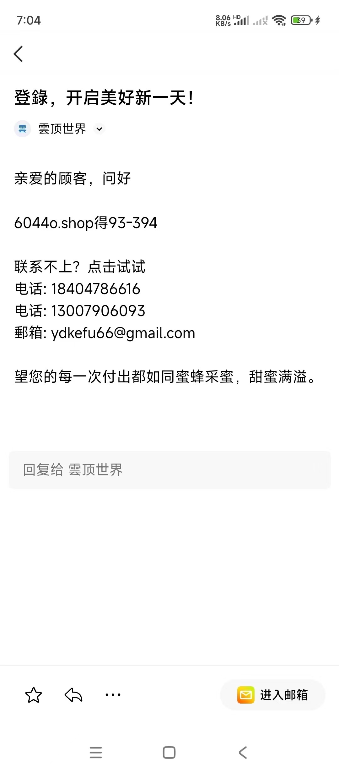 新老用户找户领取邮件彩金,下方有图具体可以试一下。