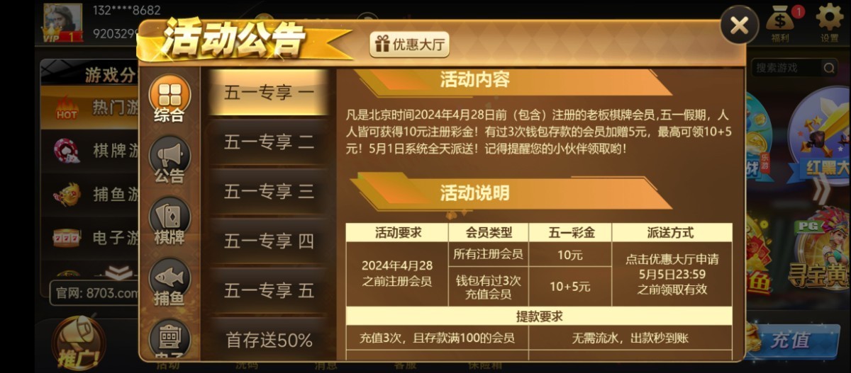 老用户登录上线,领取15彩金,出款自测