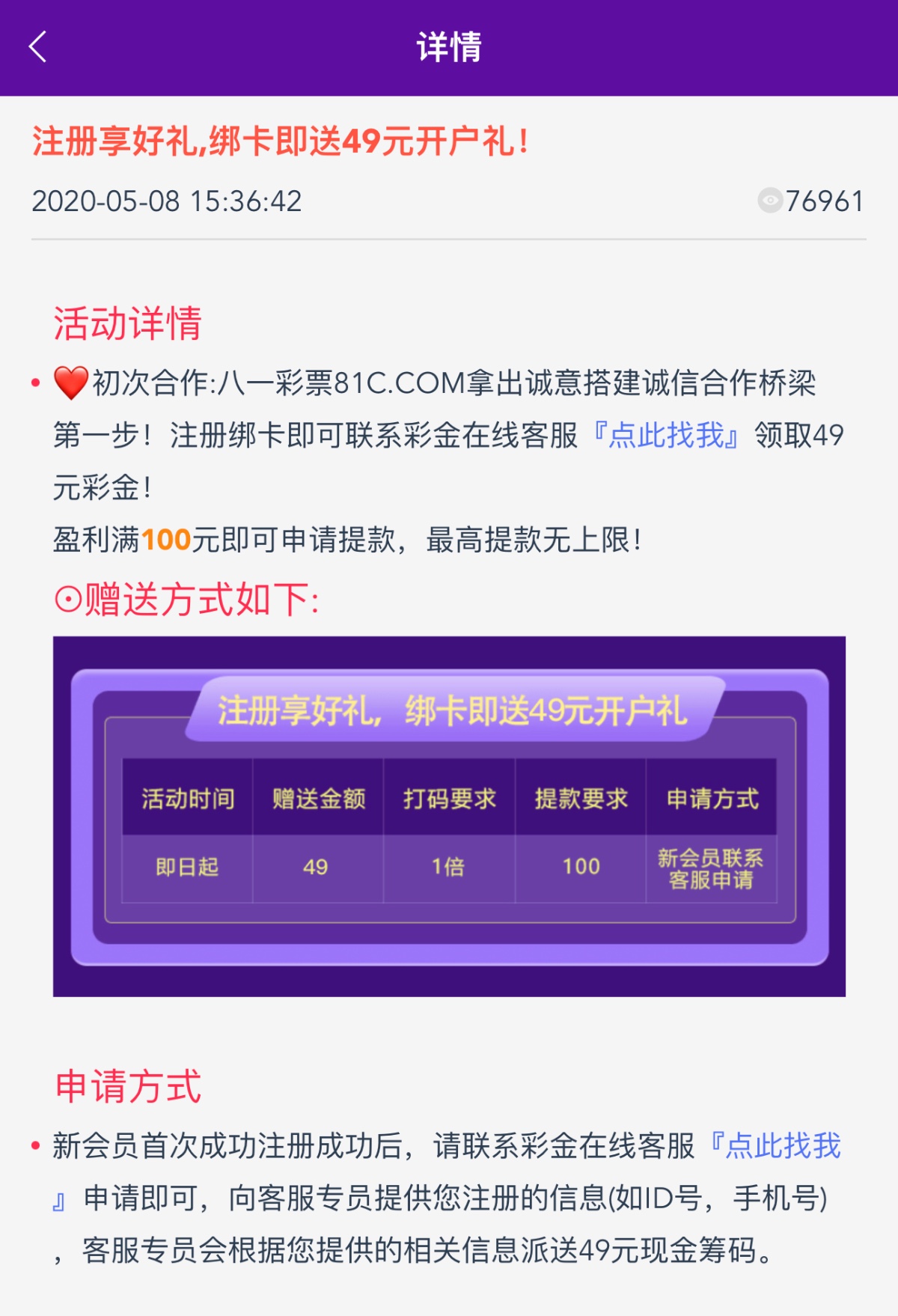 新用户注册绑卡找客服申请49彩金/100提现。不要身份证就自己p一个吧,或者等人少再去