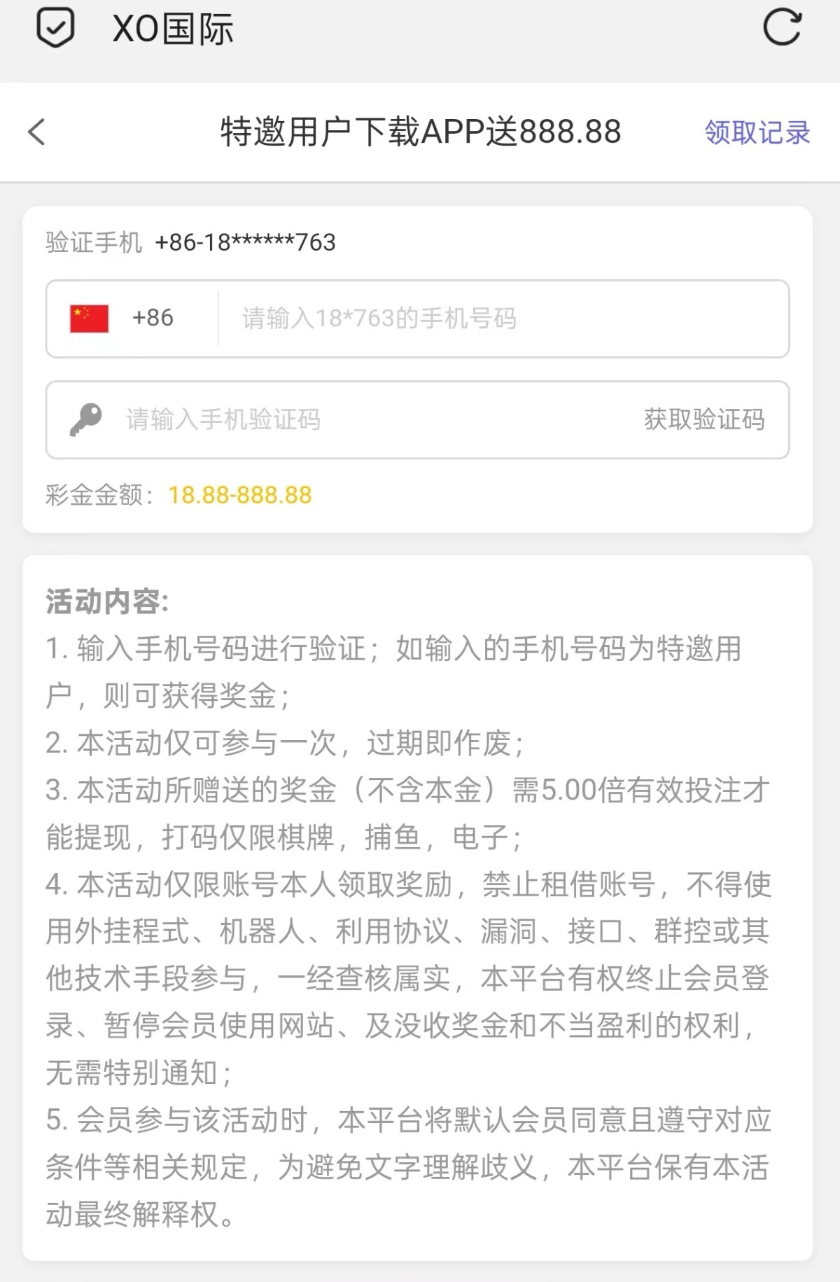 新用户注册优惠里申请送18-888 五倍流水提现。