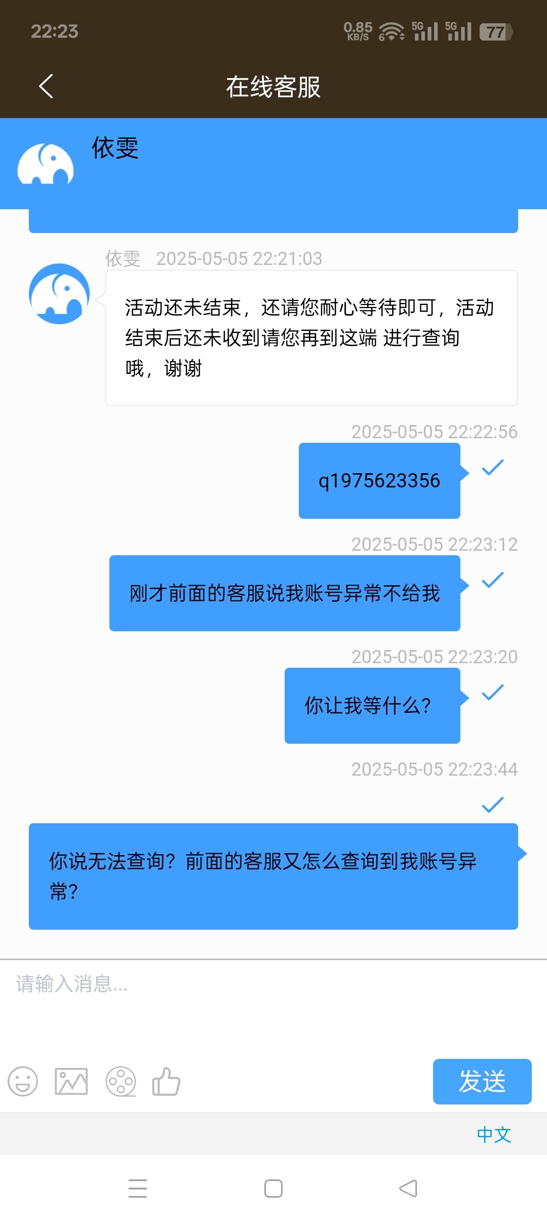 为了五一活动一个星期输了两万多,结果227连历史回馈都黑了我888,说我异常,又给我送5块注册彩金和1块在线彩金?钱能系列的全杀猪盘诈骗平台