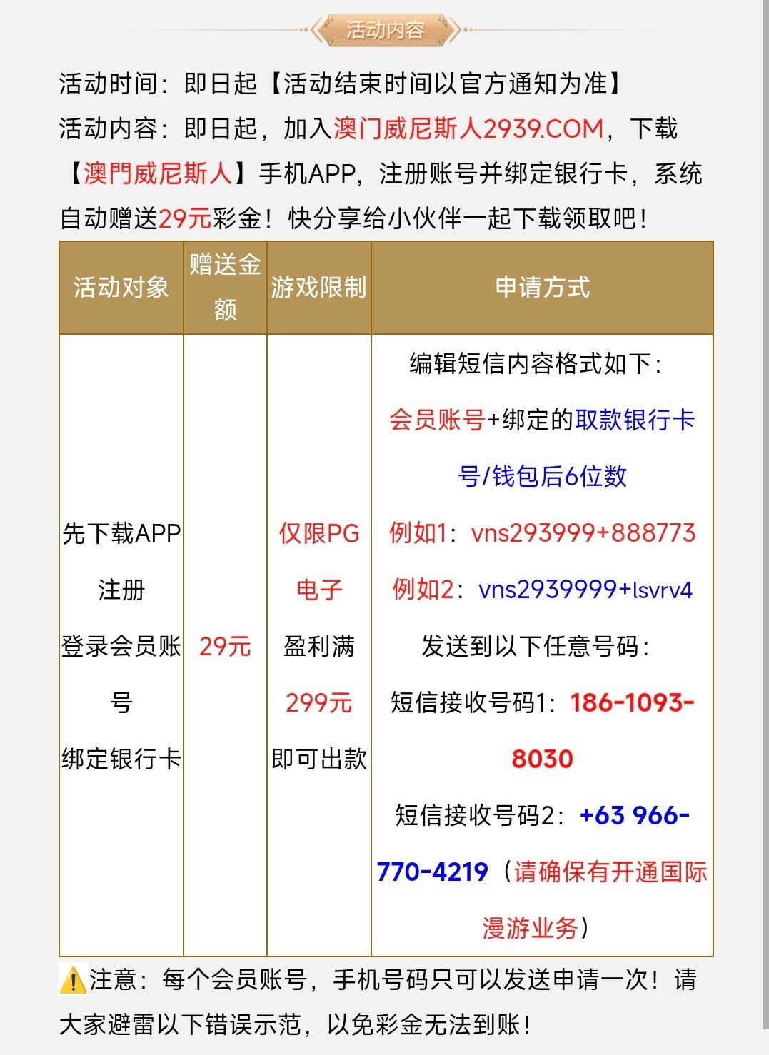 本站声明 1、本帖标题:【澳门2939】—— 注册送29