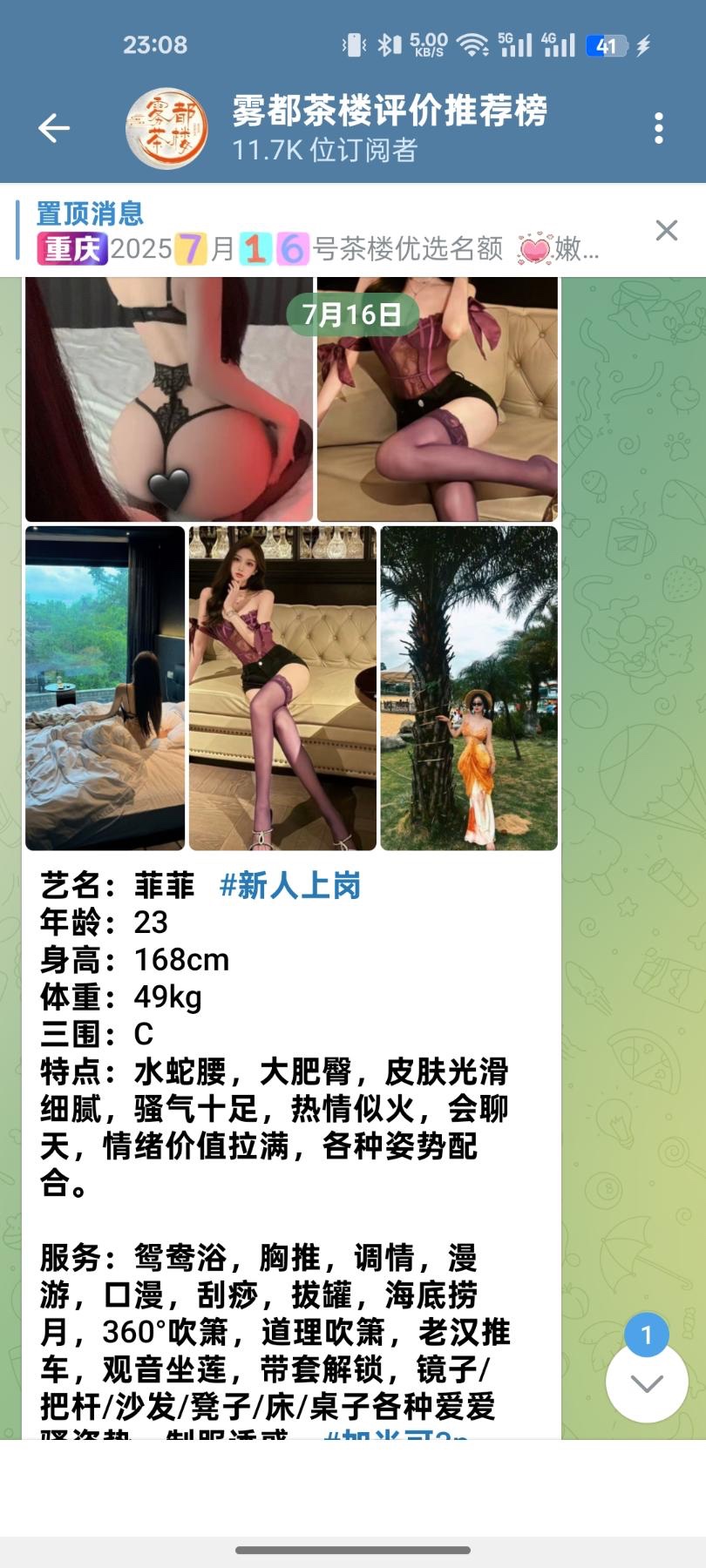 怎么正确约炮,飞机举例,先加几个大群大群上一般有置顶信息一般都是认证过的老师,群里面还有很多老师在发信息,飞机点开头像,大部分老师都会在主页挂链接,点进去就可以看见照片视频,然后部分老师会建群,有很多狼友在群里面聊天,时不时还会发抽奖活动,这种百分之百不会被骗,还有些狼友也会自己建个频道,把出击过的老师加上出击评价挂频道里,这种也靠谱,中介一般贵几百块,不过质量确实好。