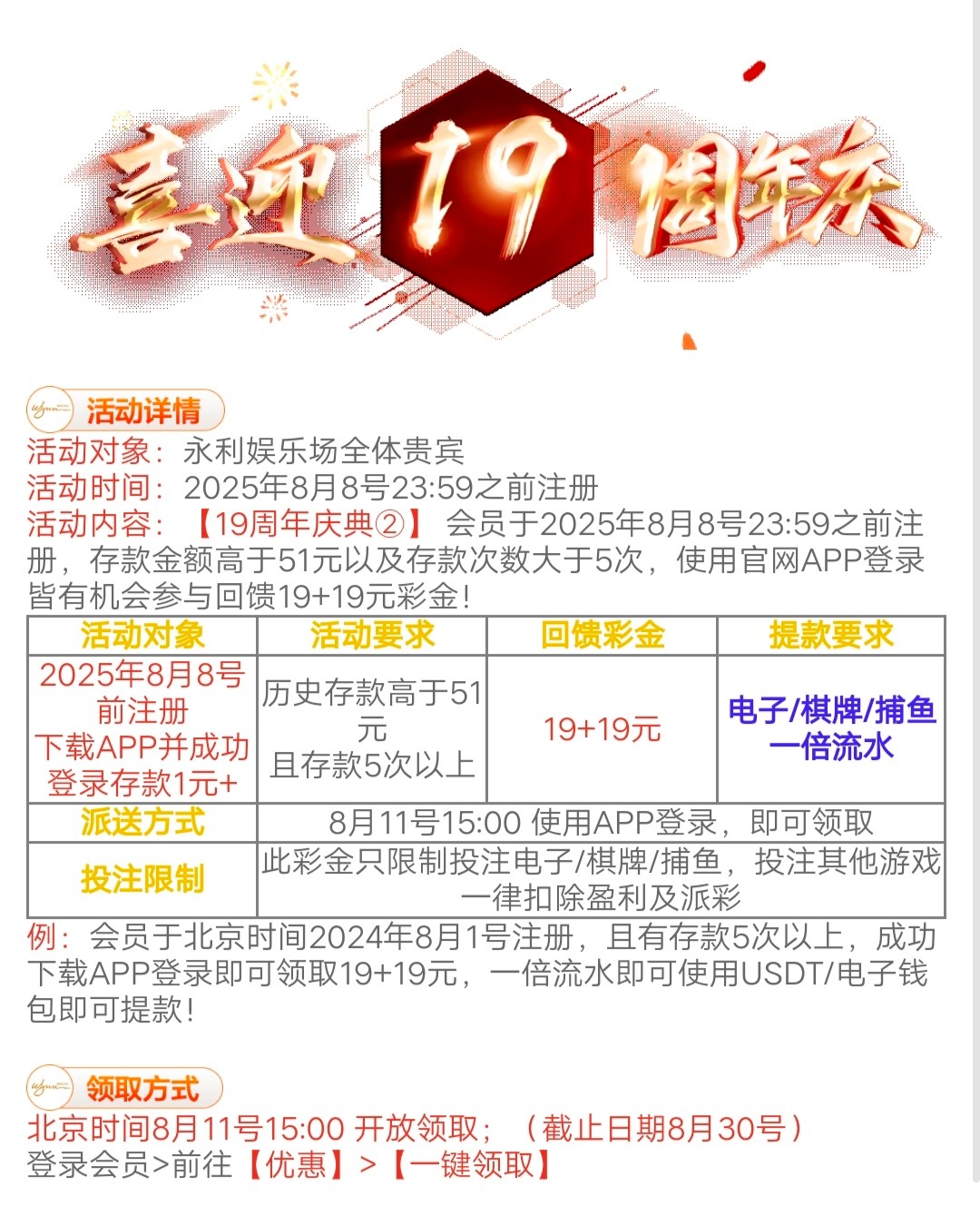 【永利娱乐】19周年回馈