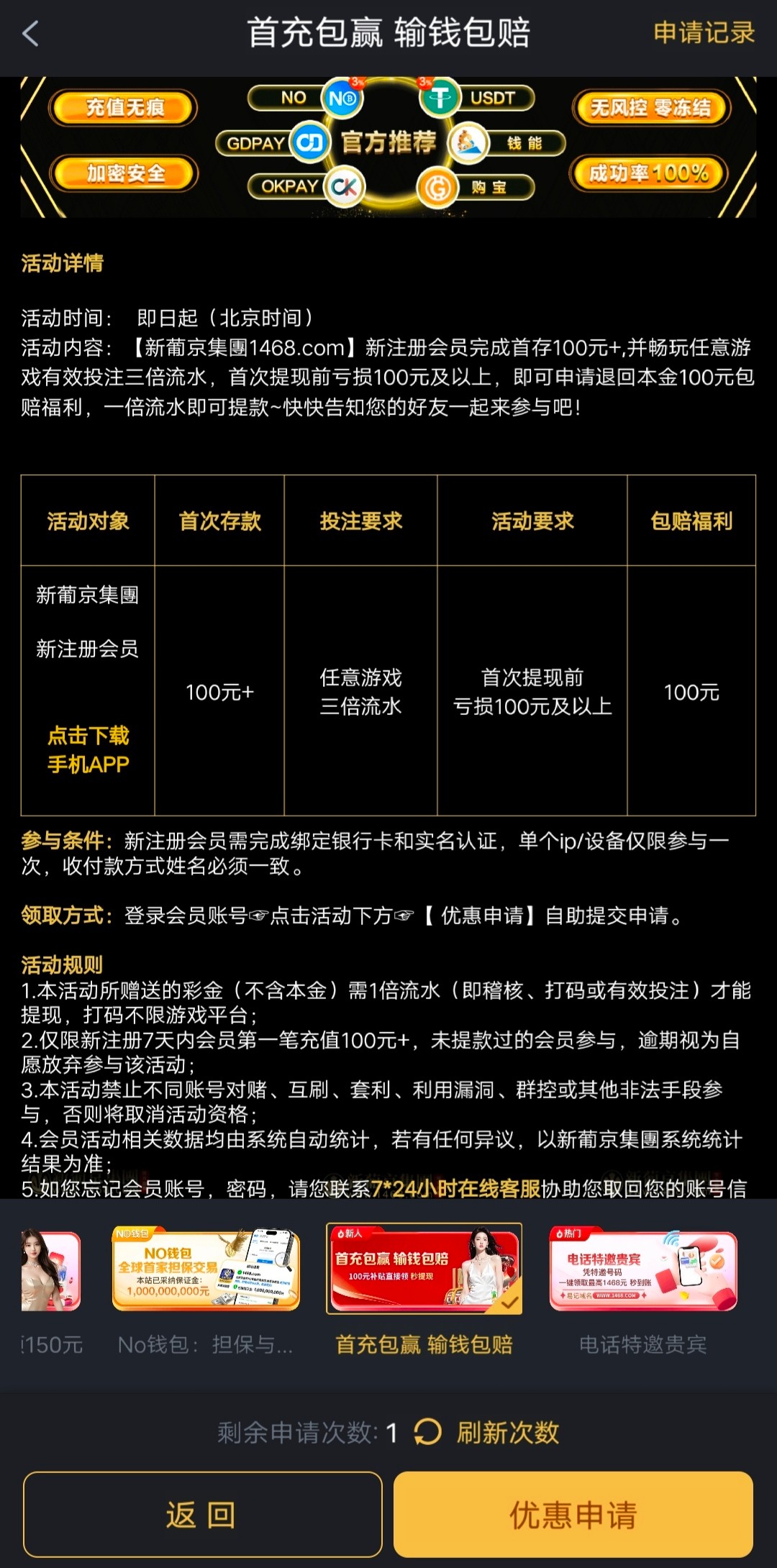 还有一个首存包赔的活动我没参加,想试试的可以了解一下。