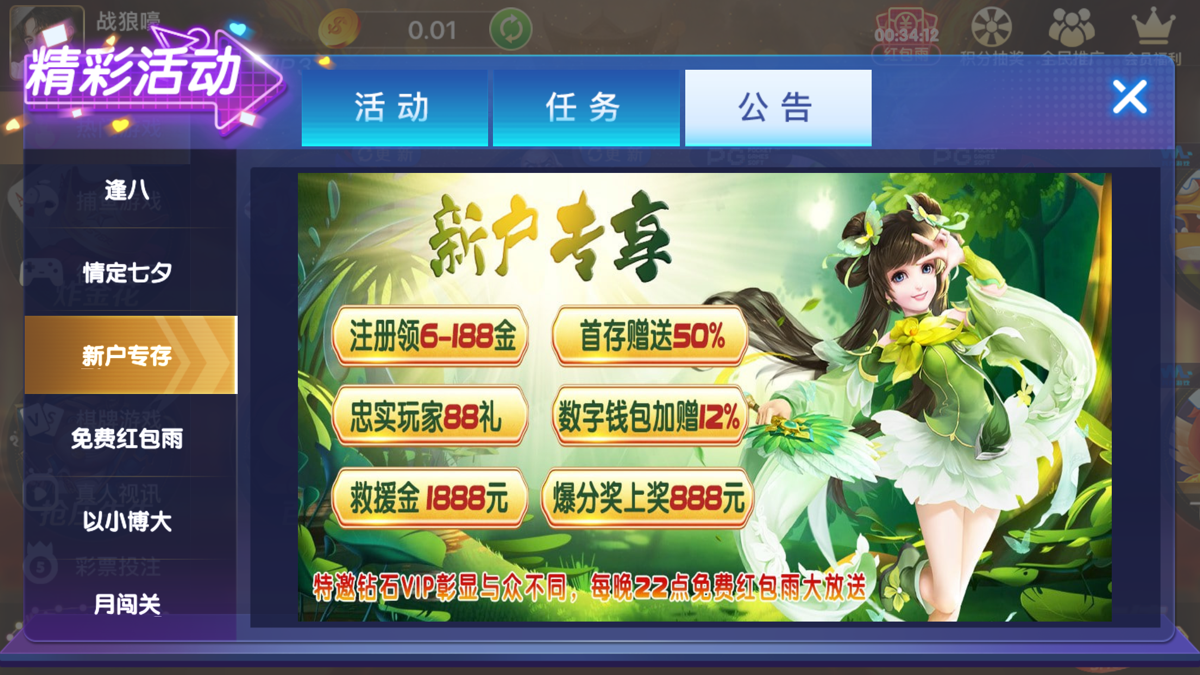 新人注册送6一188
