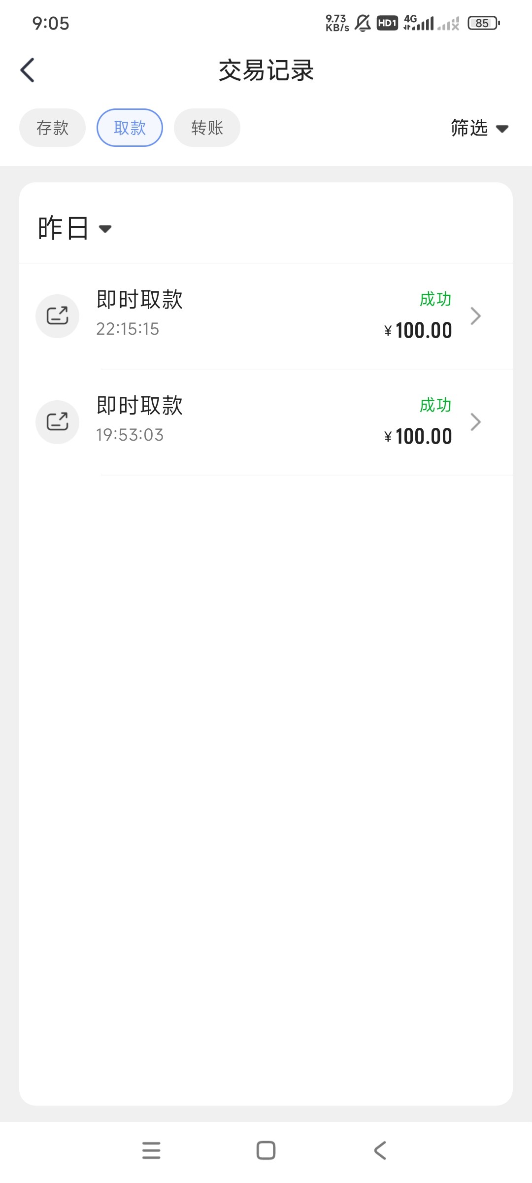 等待到账。