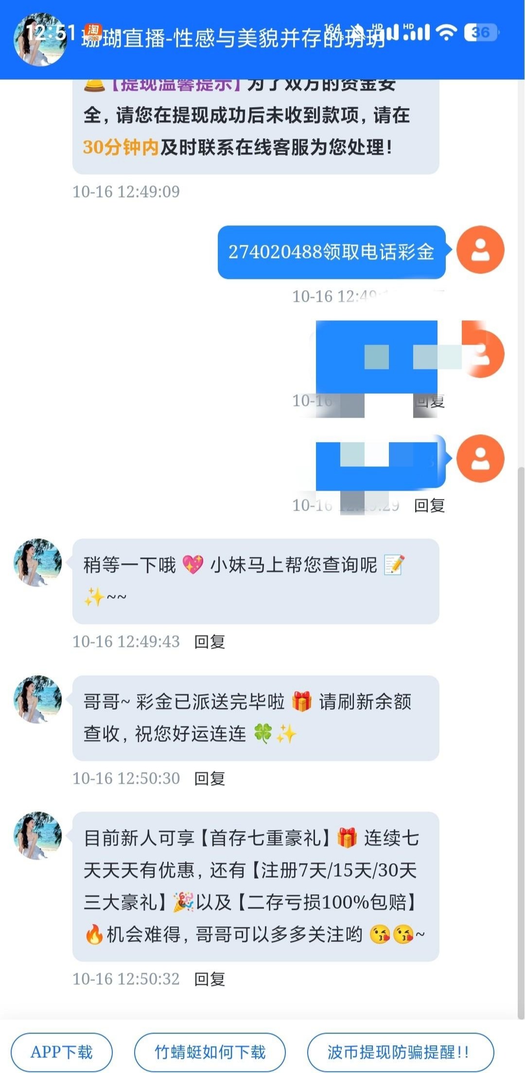接到电话,找客服发ID领取电话彩金