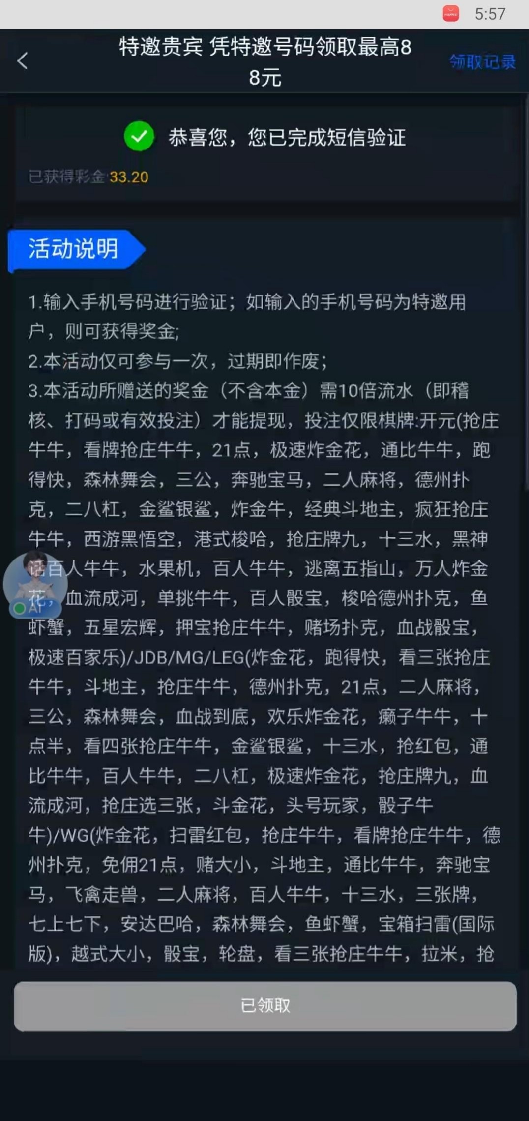 拉斯维加斯462,电话特邀自助彩金,外国号码打电话来的,28起,我领了33,麻一大水拉到400多怕不给出故意打到200,提现到账了ps:说是不能打电子,但是我打了电子也给我出了,老哥们可以去试试,有就有没有就没有,不要中出我网址是55318.vip
