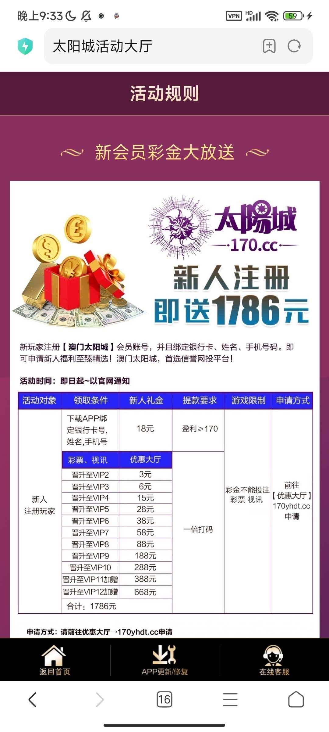 新用户下载APP注册绑卡进入优惠大厅自助申请17彩金,满170即可提现