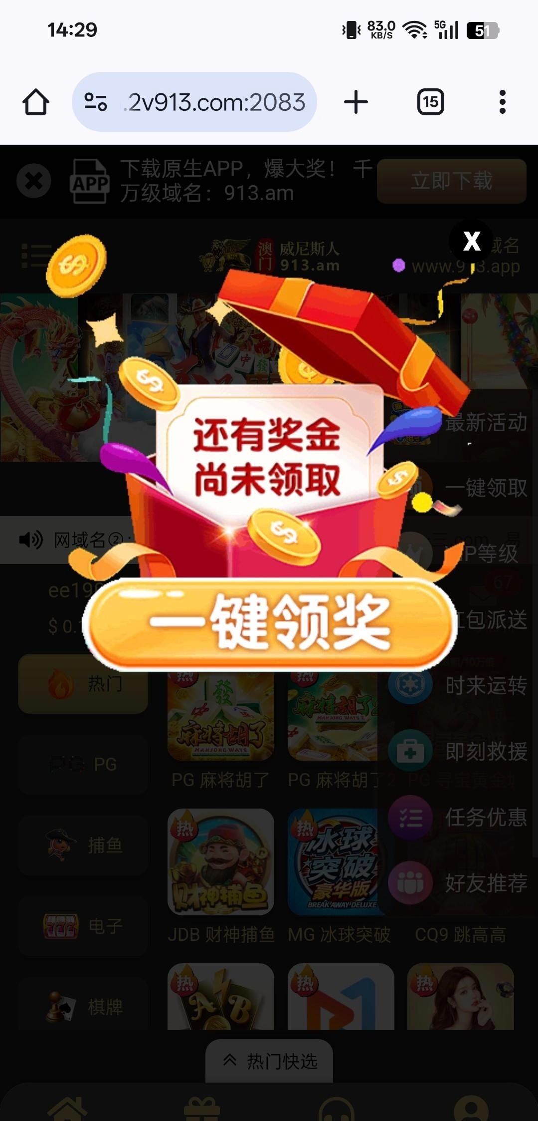 老会员登录上线看看送的8元回馈,水挺大,拉2次就来免费了,链接913.am