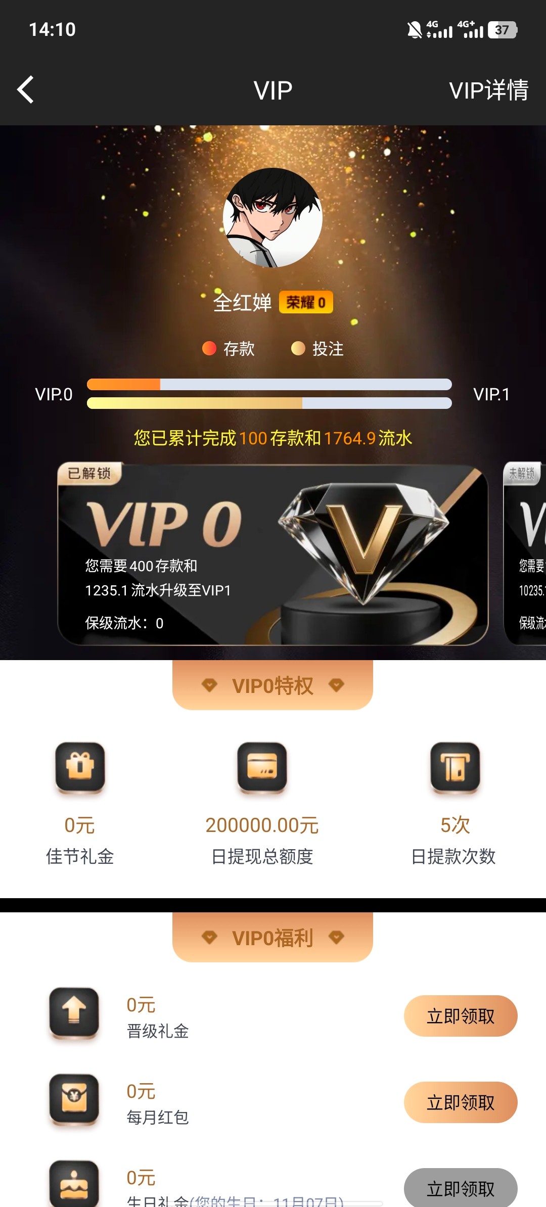 Xeh584586充值了1000多 申请彩金