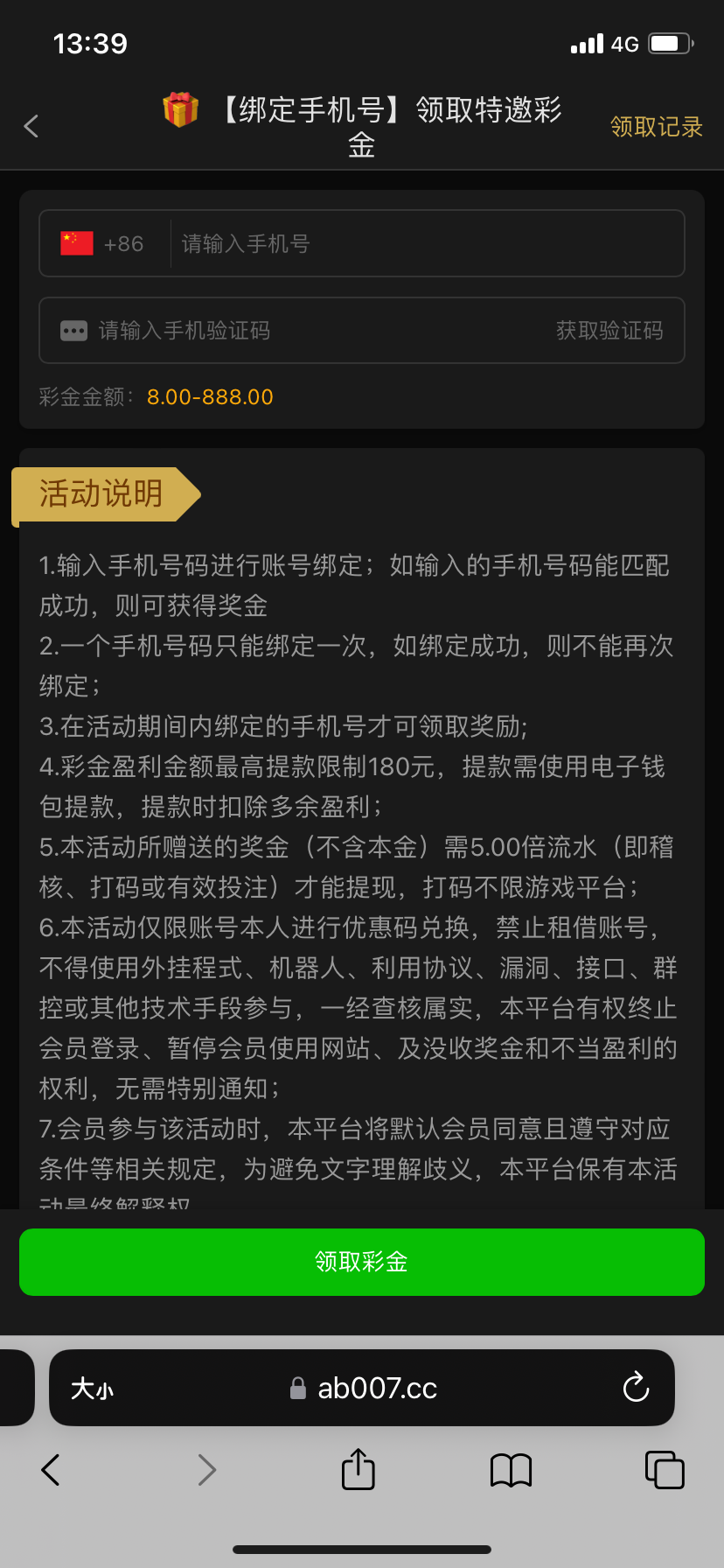 【AB55】—✅—验证手机号送彩金