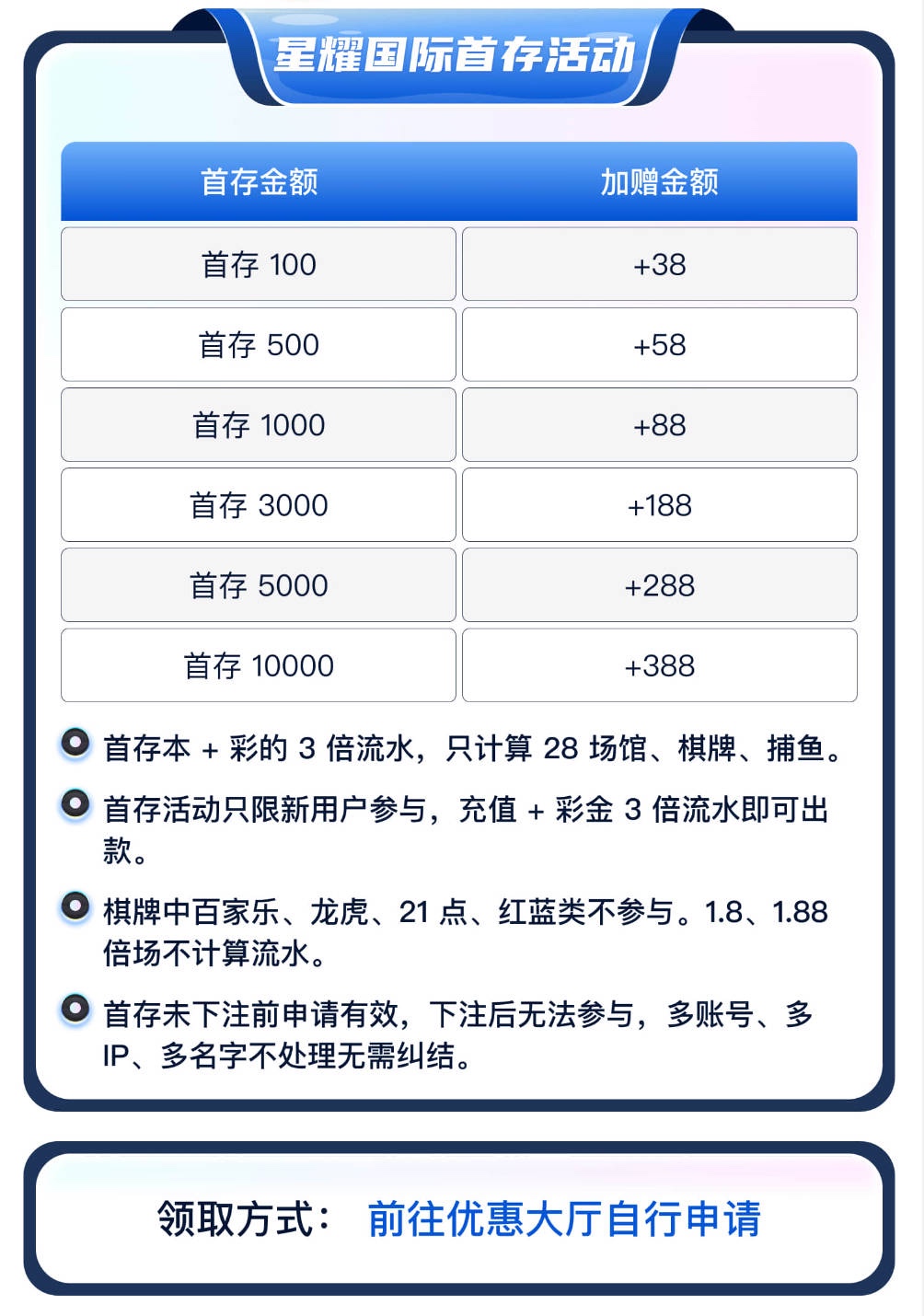 充值后未下注前优惠大厅里自助申请