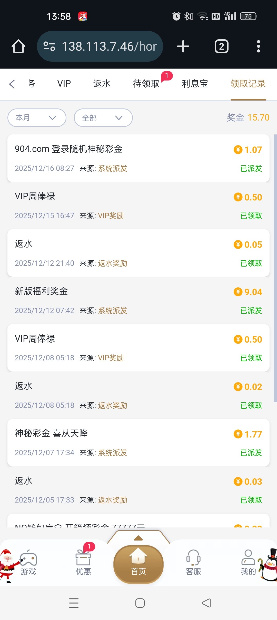 904时不时有些彩金有的要充值