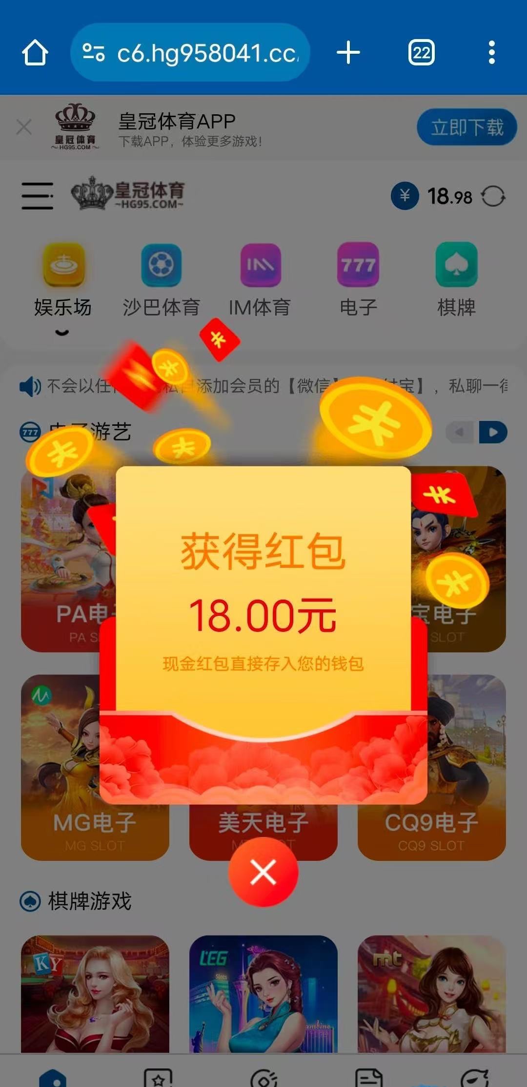 好久没登陆过,之前白嫖过一百,有号的可以去试试,别充值,地址 hg95.com