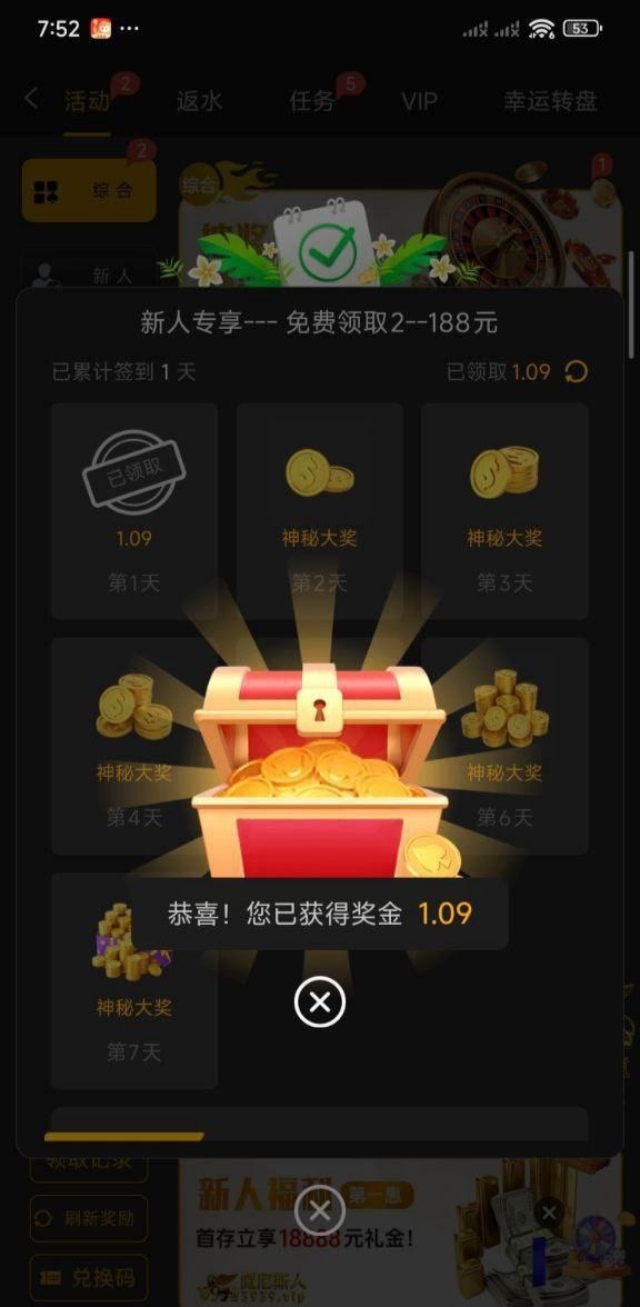 注册签到送2,能连续签到七天 具体自测