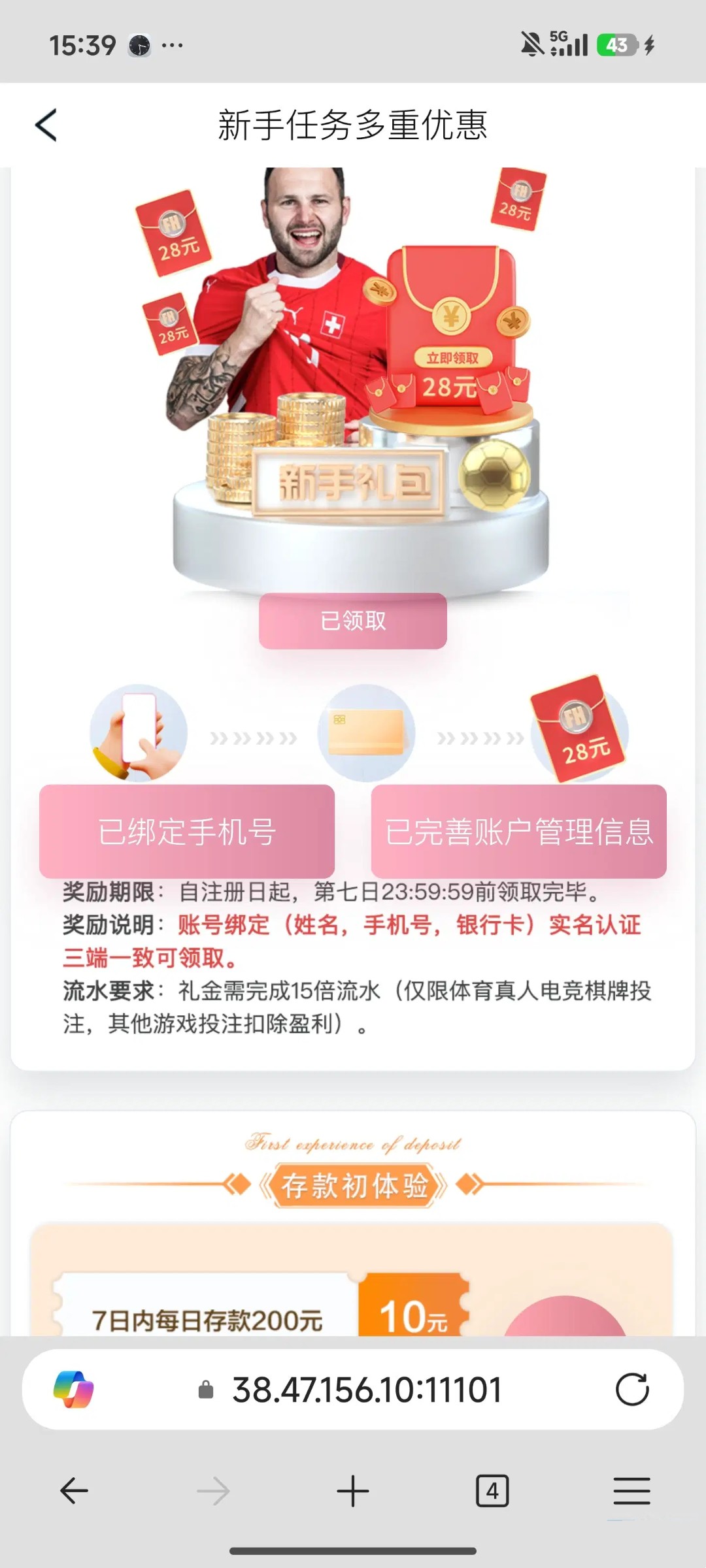 下面有投注要求,手机号,银行卡最好绑定一个人的,领取不到,联系客服刷新