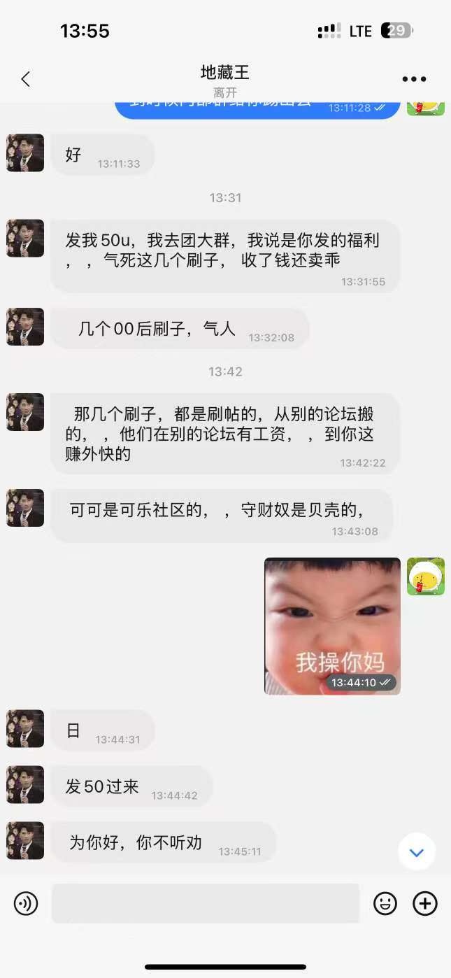 地藏王昨天赢钱了,可可群里艾特他,申请红包, ,地藏王没理她 , ,反手一群小弟上来就骂 , ,是这个情况