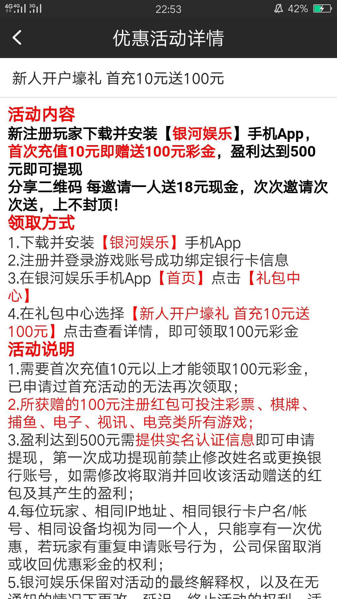 这种的都是浪费钱,充值10块。就是各种理由领不了那100 不用试了。