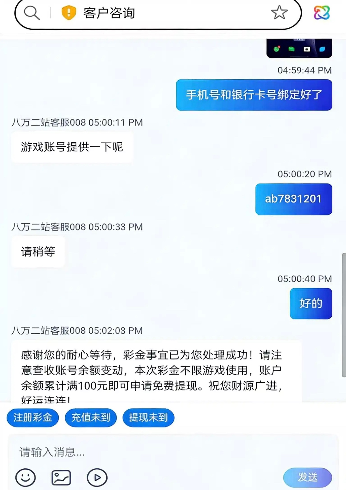 最好不要用wifi,用流量进去下载然后再绑手机号和银行卡。再联系客服申请就行了。这是新人彩金不是特邀彩金。基本很大概率都能申请到!打到100就提!链接8w.cc
