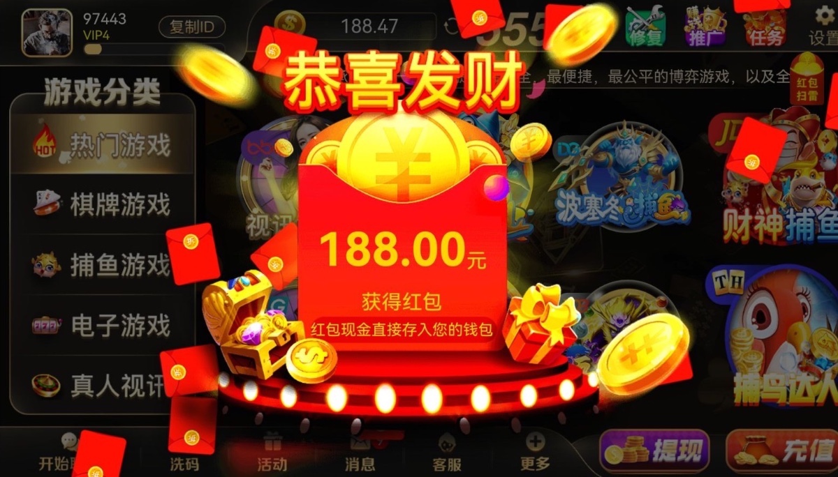 限制棋牌/电子/捕鱼,最低100提现!